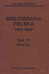 Bibliografia polska 1901-1939 Tom 10. Gos-GzKolejny, 10 tom Bibliografii polskiej 1901-1939, przygotowanej z niezwykłą starannością przez Zakład Bibliografii Polskiej 1901-1939 Biblioteki Narodowej. Bibliografia ta stanowi nieocenione źródło informacji o wszystkich działach piśmiennictwa rozwijającego się w Polsce w podanym okresie (także o publikacjach obcych uznanych za polonica zagraniczne). Tom obejmuje hasła na litery Gos-Gz i zawiera ponad 6,5 tysięca pozycji.