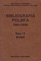 Bibliografia polska 1901-1939. Tom 11. H-HołKolejny, 11. tom Bibliografii polskiej 1901-1939, przygotowanej z niezwykłą starannością przez Zakład Bibliografii Polskiej 1901-1939 Biblioteki Narodowej. Bibliografia ta stanowi nieocenione źródło informacji o wszystkich działach piśmiennictwa rozwijającego się w Polsce w podanym okresie (także o publikacjach obcych uznanych za polonica zagraniczne). Tom obejmuje hasła na litery H-Hoł i zawiera ponad 6,5 tysięca pozycji.