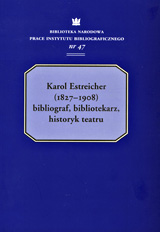 Karol Estreicher (1827-1908). Bibliograf, bibliotekarz, historyk teatruJest to kolejna publikacja z serii „Prace Instytutu Bibliograficznego”, zawierająca materiały z Sesji Jubileuszowej w 100. rocznicę śmierci Karola Estreichera - wybitnego bibliografa, wieloletniego dyrektora Biblioteki Jagiellońskiej, historyka literatury i teatru, także prawnika i publicysty.