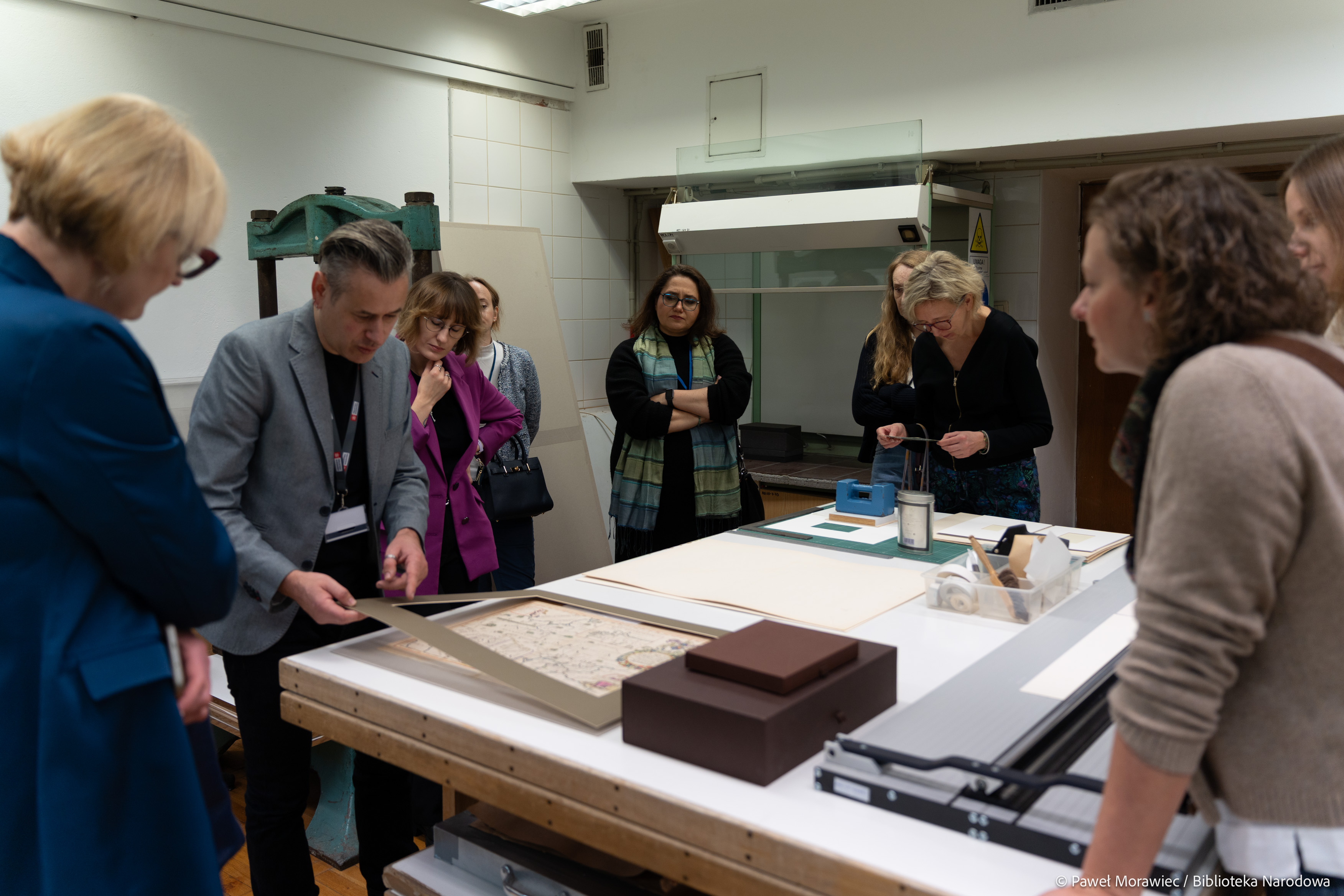 Wieczorem uczestnicy mieli okazję zwiedzić Skarbiec Biblioteki Narodowej w Pałacu Rzeczypospolitej oraz wziąć udział w kuratorskim oprowadzaniu po wystawie czasowej Jam posełkini jego. Język i emocje polskiego średniowiecza. Dzień zakończyło spotkanie sieciujące, tworzące przestrzeń do nieformalnych rozmów, wymiany doświadczeń i budowania relacji między bibliotekami.