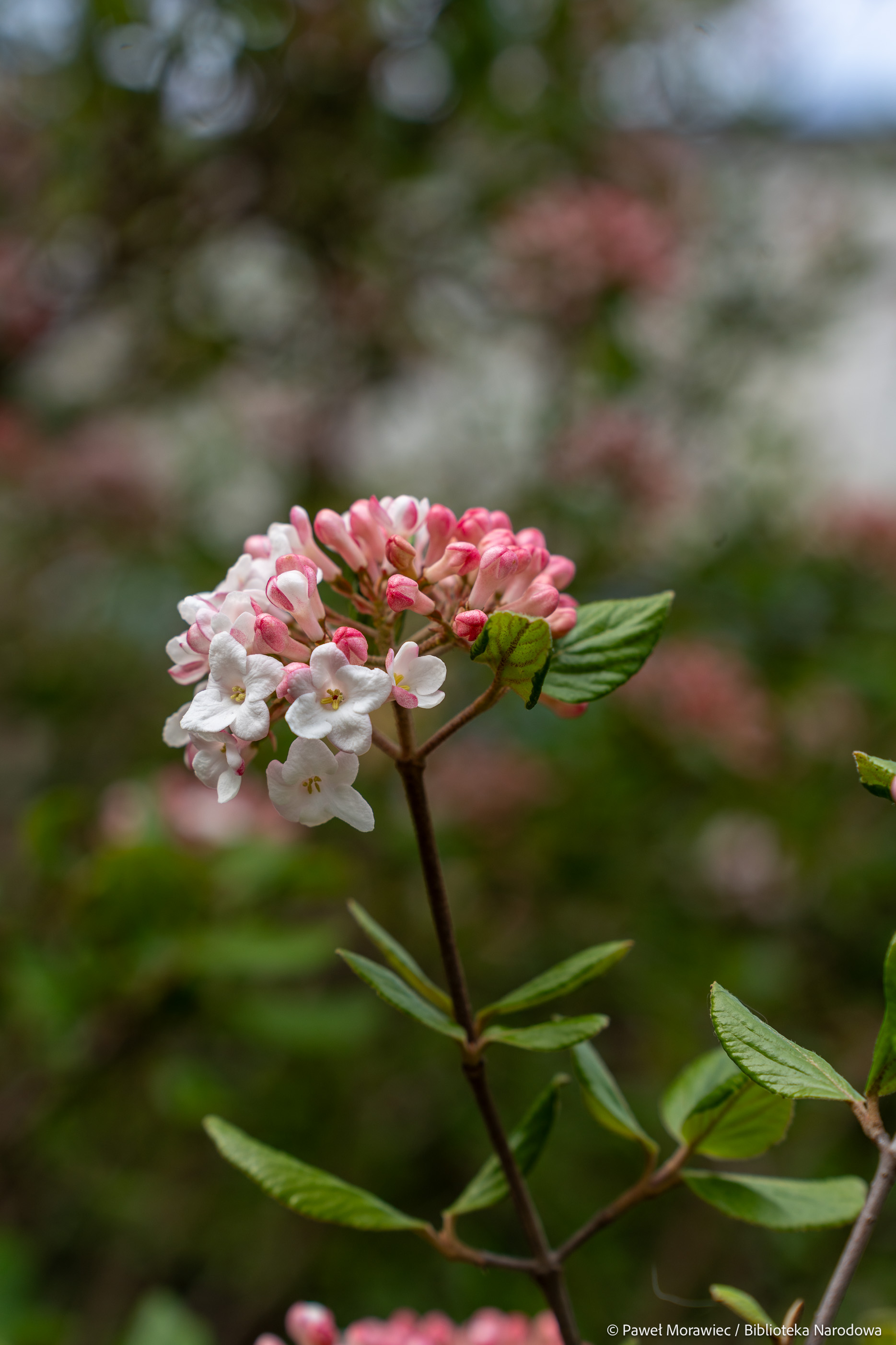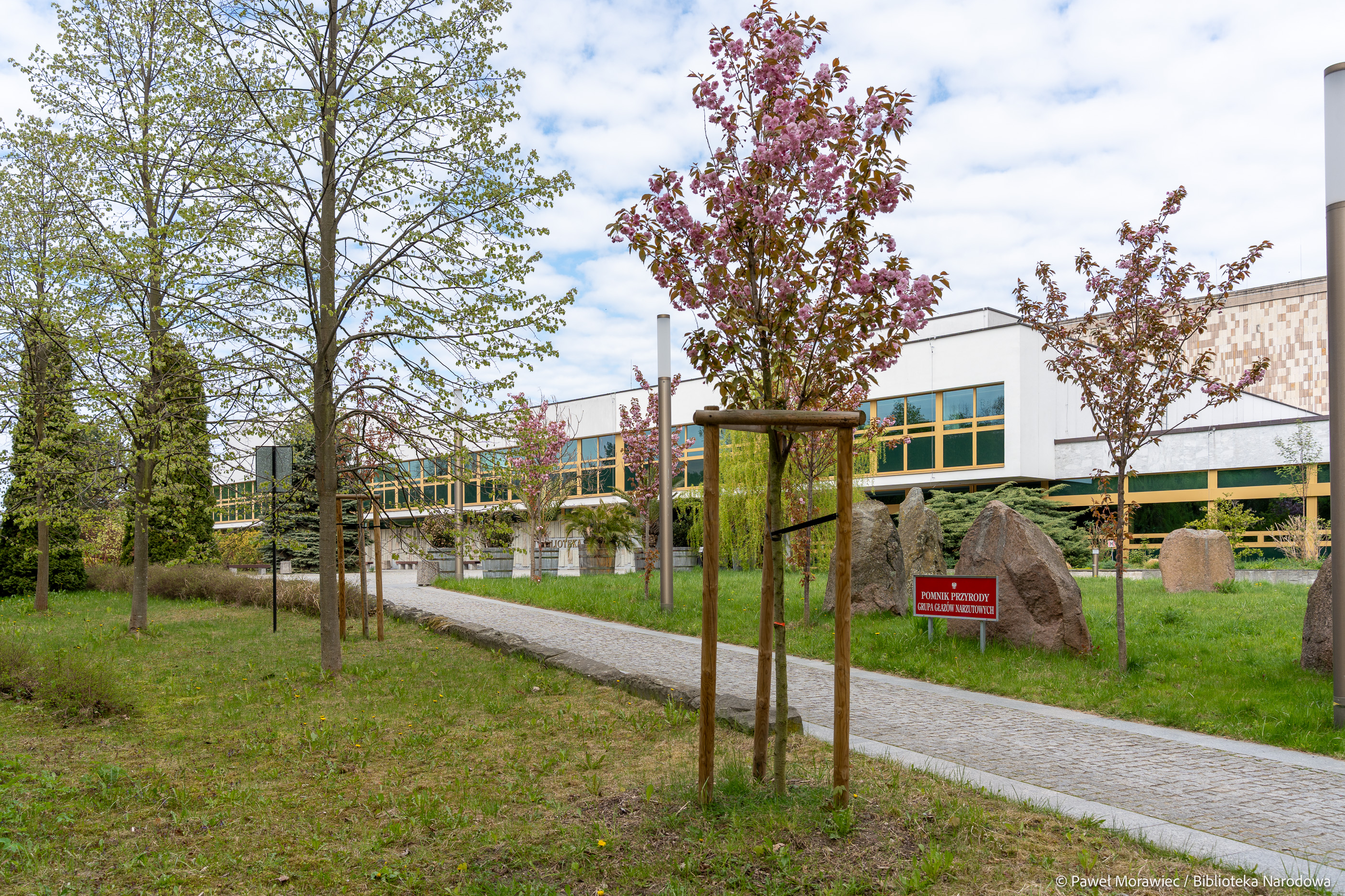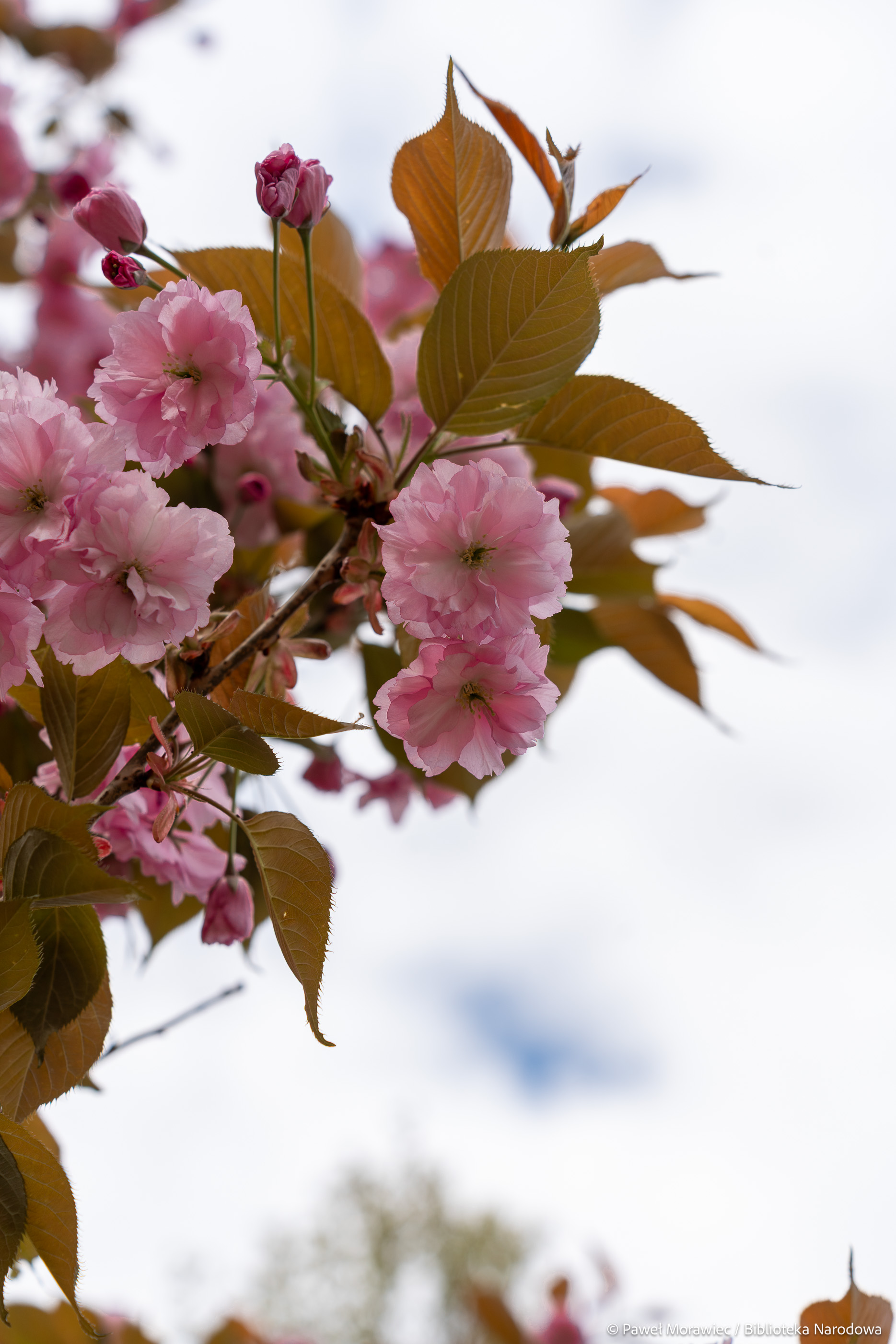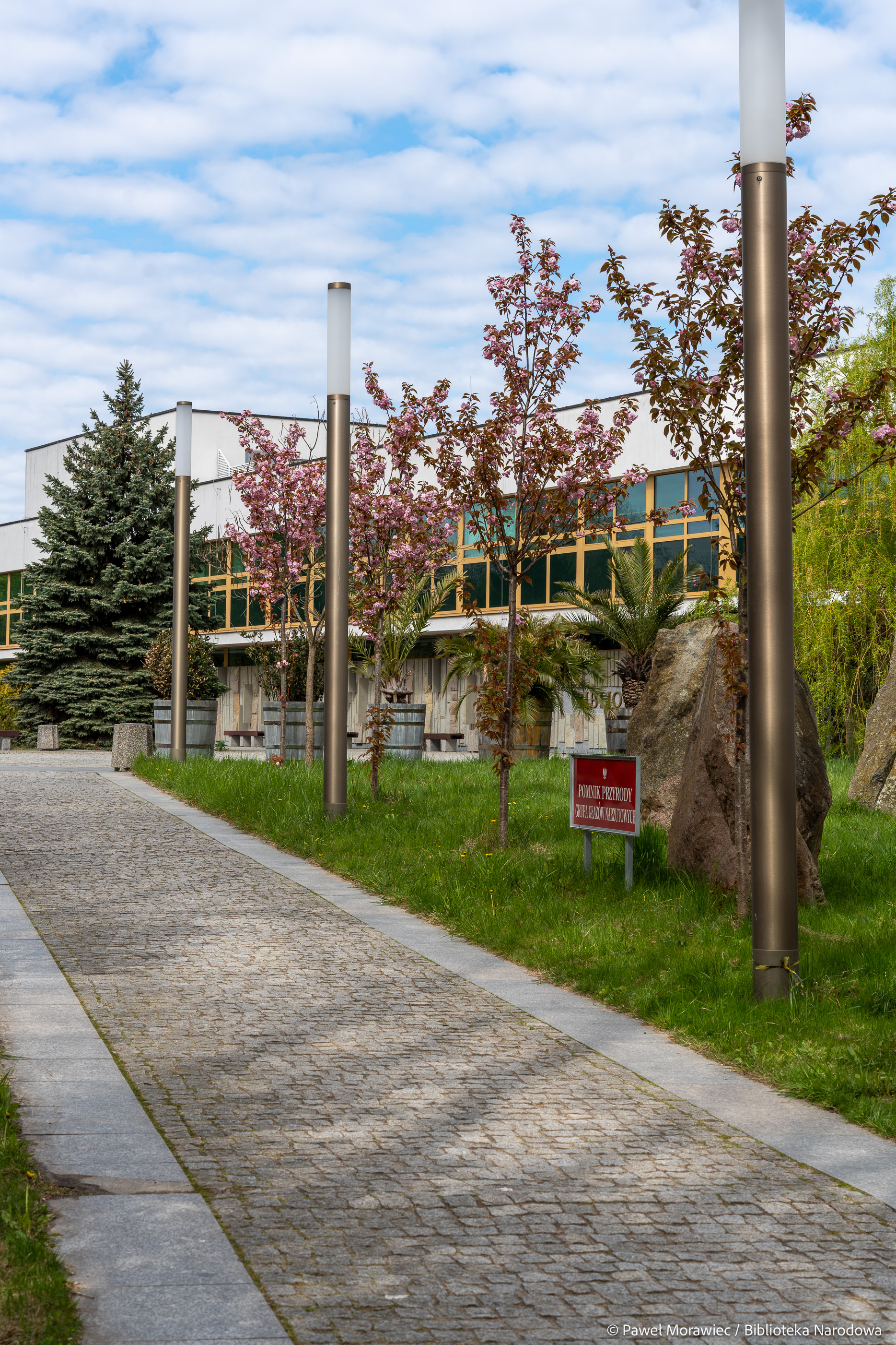 Wiosna w pełni rozgościła się wokół siedziby głównej Biblioteki Narodowej przy Alei Niepodległości 213. W ogrodzie zakwitły kolejne rośliny: wiśnie piłkowane oraz kaliny koreańskie.