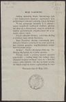 Włościanie Województwa Krakowskiego! [W oczach Waszych tocząca się wojna od pięciu miesięcy...] : Dnia 21 Czerwca 1863 roku [S.l. : s.n., 1863]; [1] k. 40x25 cm |  Mieszkańcy Warszawy! [Komitet Centralny Narodowy przyjmując na swoje barki całe brzemię Rządu Tymczasowego...] [Warszawa : s.n., 1863]; [1] k. 24x20 cm |  Mieszkańcy Galicyi Zachodniéj! [Smutne doświadczenie ostatnich czasów przekonało...] [S.l. : s.n., 1863?]; [1] k. 22x17 cm |  Obligacyja Tymczasowa Pożyczki Ogólnéj Narodowéj : w myśl Dekretów Rządu Narodowego z dnia 10° Października i 15° Grudnia 1863 roku ustanowiona : 40 : Czterdzieści Złotych Polskich / [Komissya Długu Narodowego ; Rząd Narodowy] [S.l. : s.n., 1863]; [2] s. 14x22 cm |