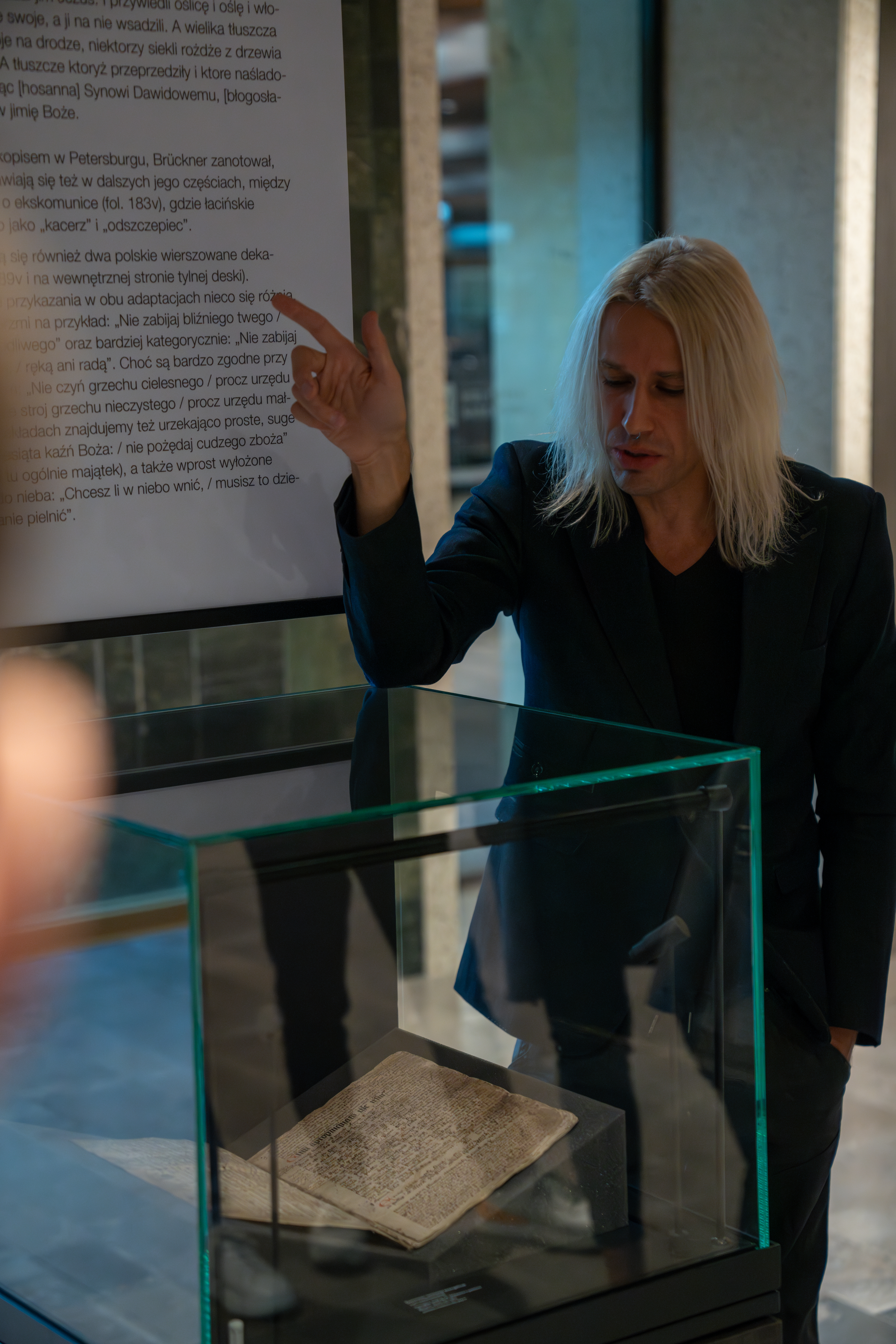 Tekst Kazań zapisano w XIV wieku, ale mógł on powstać nawet sto lat wcześniej. Wystawa prezentuje też średniowieczne pieśni religijne i świeckie, najstarsze polskie żarty, a nawet piętnastowieczne zaklęcia. Ekspozycja jest jedyną okazją, by zobaczyć najcenniejsze zabytki średniowiecznej polszczyzny, na co dzień przechowywane w skarbcu Biblioteki Narodowej. Wystawa pozwala także zapoznać się postacią jednego z największych polskich humanistów, którego dorobek do dziś budzi podziw i naukowe dyskusje.
