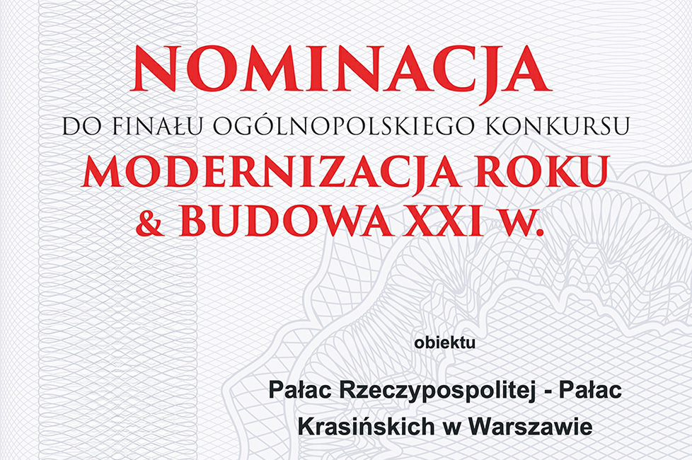 Pałac Rzeczypospolitej w finale Ogólnopolskiego Konkursu Otwartego Modernizacja Roku & Budowa XXI w.