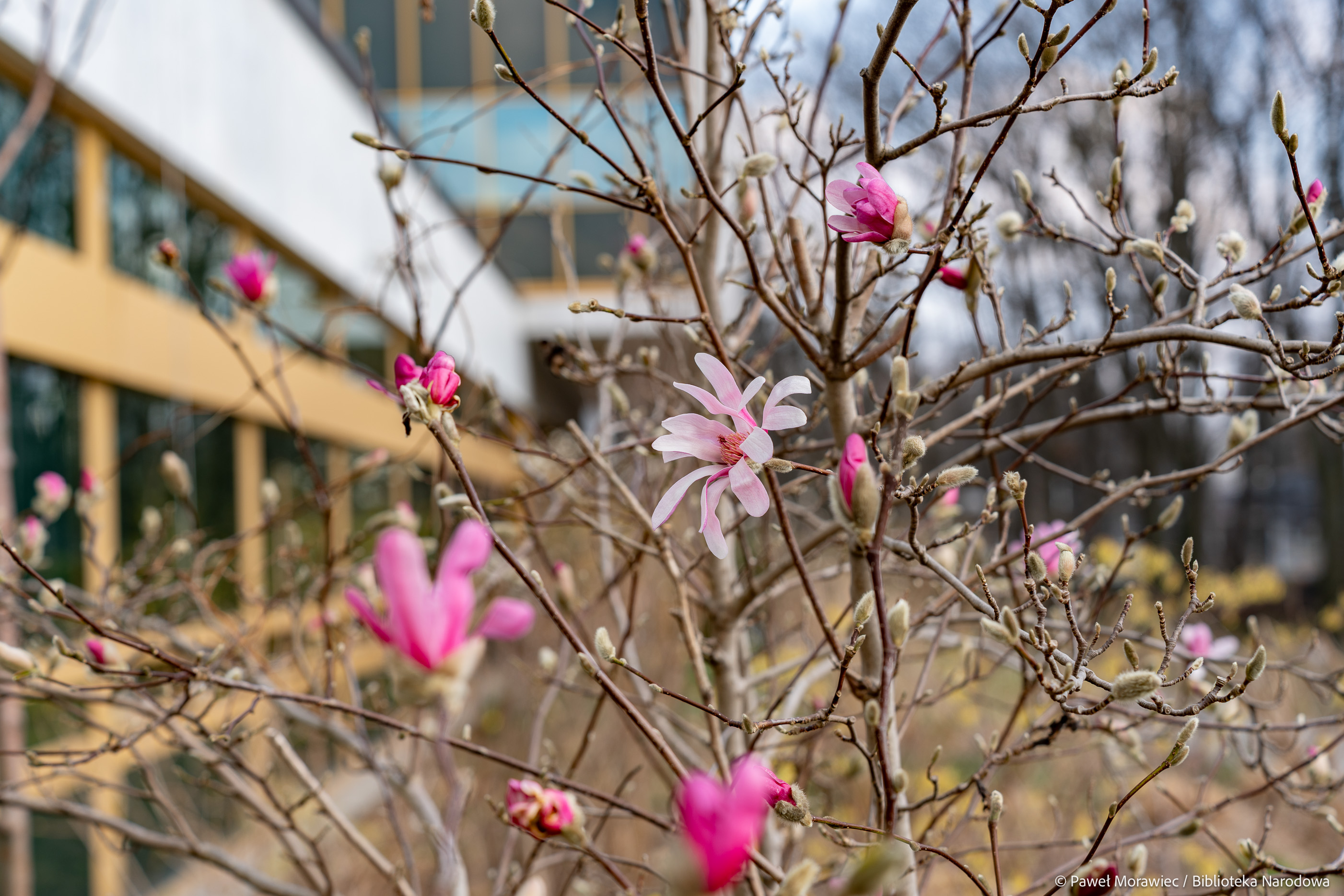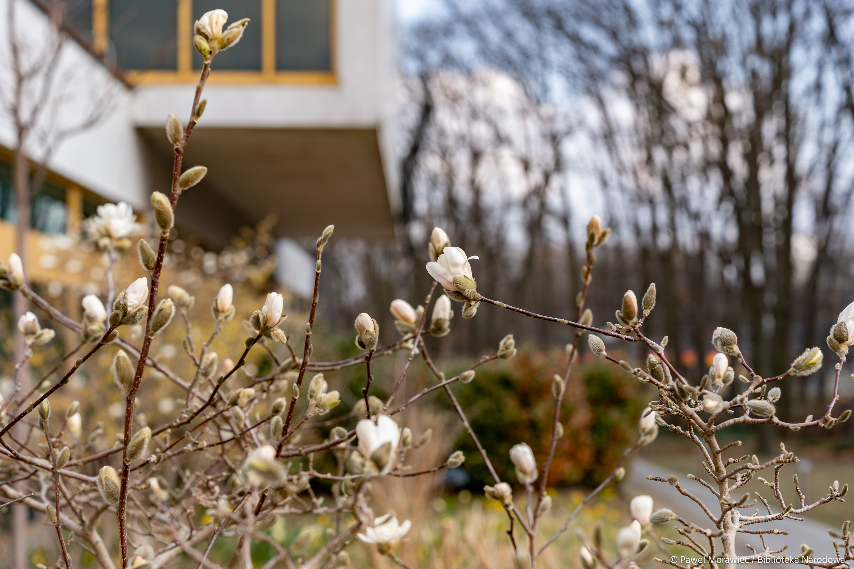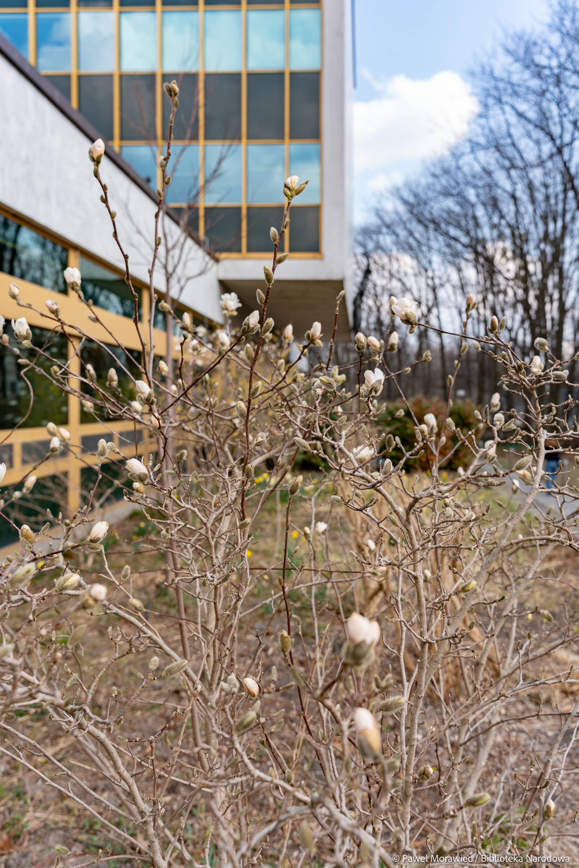 Kalendarzowa wiosna zawitała już do Biblioteki Narodowej. Wokół budynku przy al. Niepodległości 213 pojawiają się delikatne, ale pełne życia akcenty natury: kwitnąca magnolia, żonkile, krokusy oraz rozchodnik karpacki. Te pierwsze oznaki budzącej się przyrody ożywiają otoczenie po zimowych miesiącach i dopełniają wiosenny obraz zieleni wokół Biblioteki Narodowej. Na patio przy Czytelni Dolnej można oglądać kwiaty ciemierników w odcieniach bieli i różu.