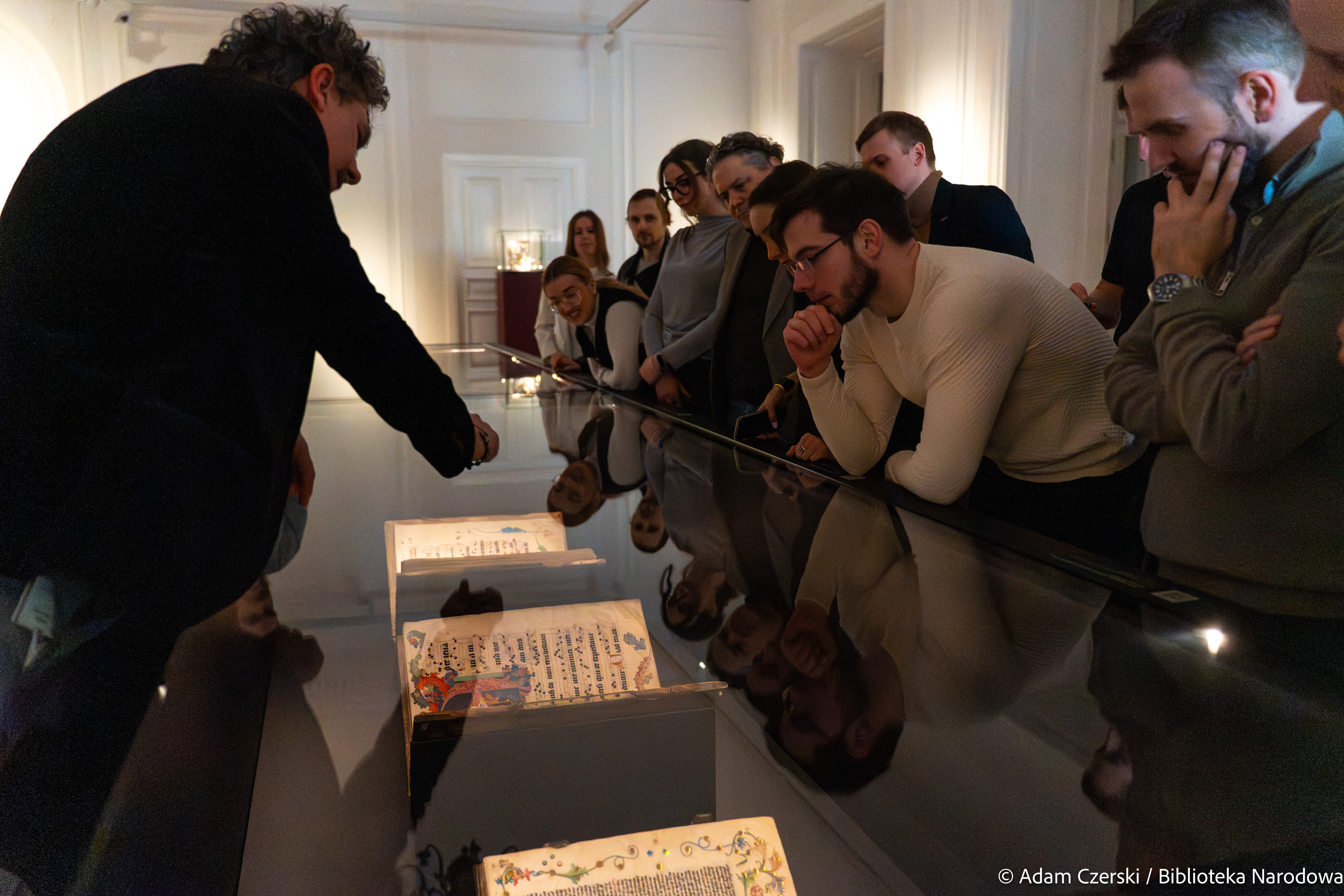 Podczas wizyty w Pałacu Rzeczypospolitej goście mieli okazję zwiedzić wystawę stałą prezentującą najcenniejsze skarby piśmiennictwa polskiego. Oprowadzenie po ekspozycji poprowadził dr Maciej Szablewski, pełnomocnik dyrektora Biblioteki Narodowej ds. międzynarodowych oraz kierownik Zakładu Udostępniania Zbiorów. Słuchacze zapoznali się z unikatowymi obiektami należącymi do dziedzictwa narodowego i europejskiego oraz poznali zasady ich ochrony i udostępniania.