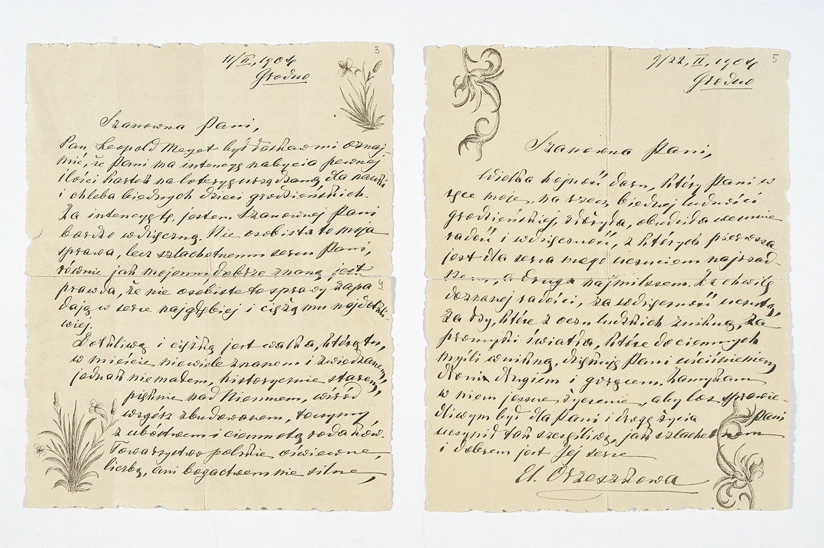 Adresatką tych listów jest Antonina Natansonówna. Obydwa powstały w Grodnie w lutym 1904 roku. Obydwa zostały wykonane kaligraficznym, starannym i czytelnym pismem.