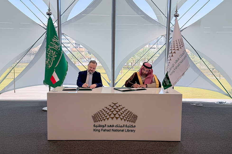 On January 19-20, 2026, a delegation of the National Library visited the King Fahid National Library in Rijad. The key point of the visit was a ceremonial signing of a co-operation agreement by directors of both institutions: doctor Yazeed Mohammed Alhumaidan and Doctor Tomasz Makowski – witnessed by the Polish Republic Ambassador in Saudi Arabia, Mr Robert Rostek.